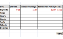 NOTA: Estes modelos de quadros de horários requerem que você insira as horas em um formato HH:MM.